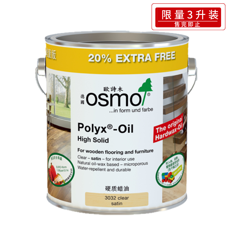 能特别满足木地板的需求——易于维护的表面,带来健康的室内环境!欧诗木硬质蜡油(原始)能够加深木材表面的颜色,同时增加其耐久性、防水性和抗污性。